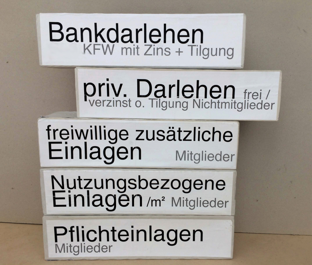 Die Kernforderung von Aufsichtsrat Dr. Jan Glückert aus der Arbeitsgruppe Finanzierung lautet, dass das Nutzungsentgelt pro qm Wohnfläche, das den größten Anteil der Gelder darstellt, konstant bleibt. Hier strebe man 10 Euro, möglichst aber auch darunter, pro Quadratmeter an. Es mache schließlich den Reiz einer Genossenschaft aus, dass sie sich von der Mietentwicklung abkoppelt und flexible KFW Darlehen zur Finanzierung nutzen kann. Jan Glückert verschweigt nicht, dass die Grundvoraussetzung für die Finanzierungsmodelle eine hohe Wohndichte ist: „Ansonsten wird das Abenteuer Genossenschaft entweder sehr exklusiv oder aber sehr kurz“. Für die Mitgliedschaft in der Genossenschaft werden einmalig 1.000 Euro Pflichtanteil + 70 Euro Aufnahmegebühr fällig.