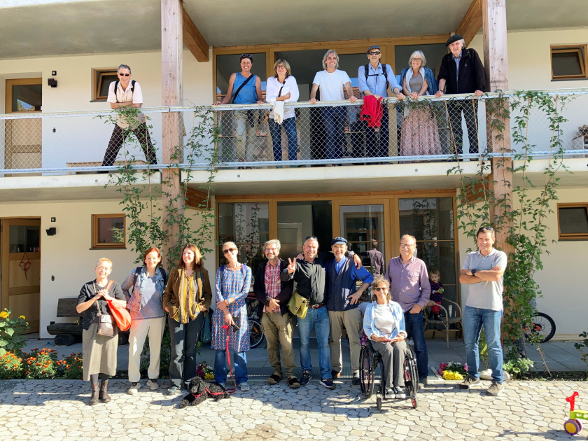Mitglieder unserer Wohngenossenschaft trafen sich mit BewohnerInnen der Wangener Genossenschaft wohnen + und dem Architekten vor Ort zu einem Gedankenaustausch. Wie Architekt Theo Keller ausführte, sei man in Wangen mittlerweile „übern Berg“: Alle 30 Wohneinheiten sind bezogen.